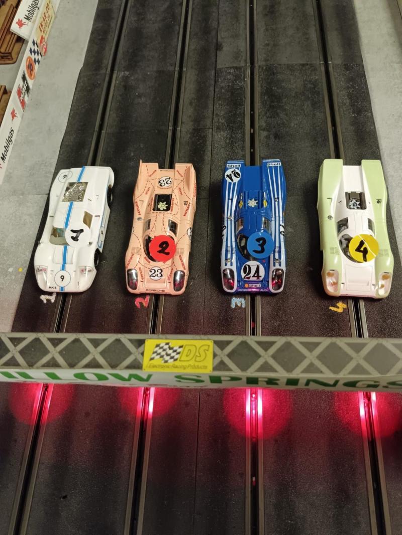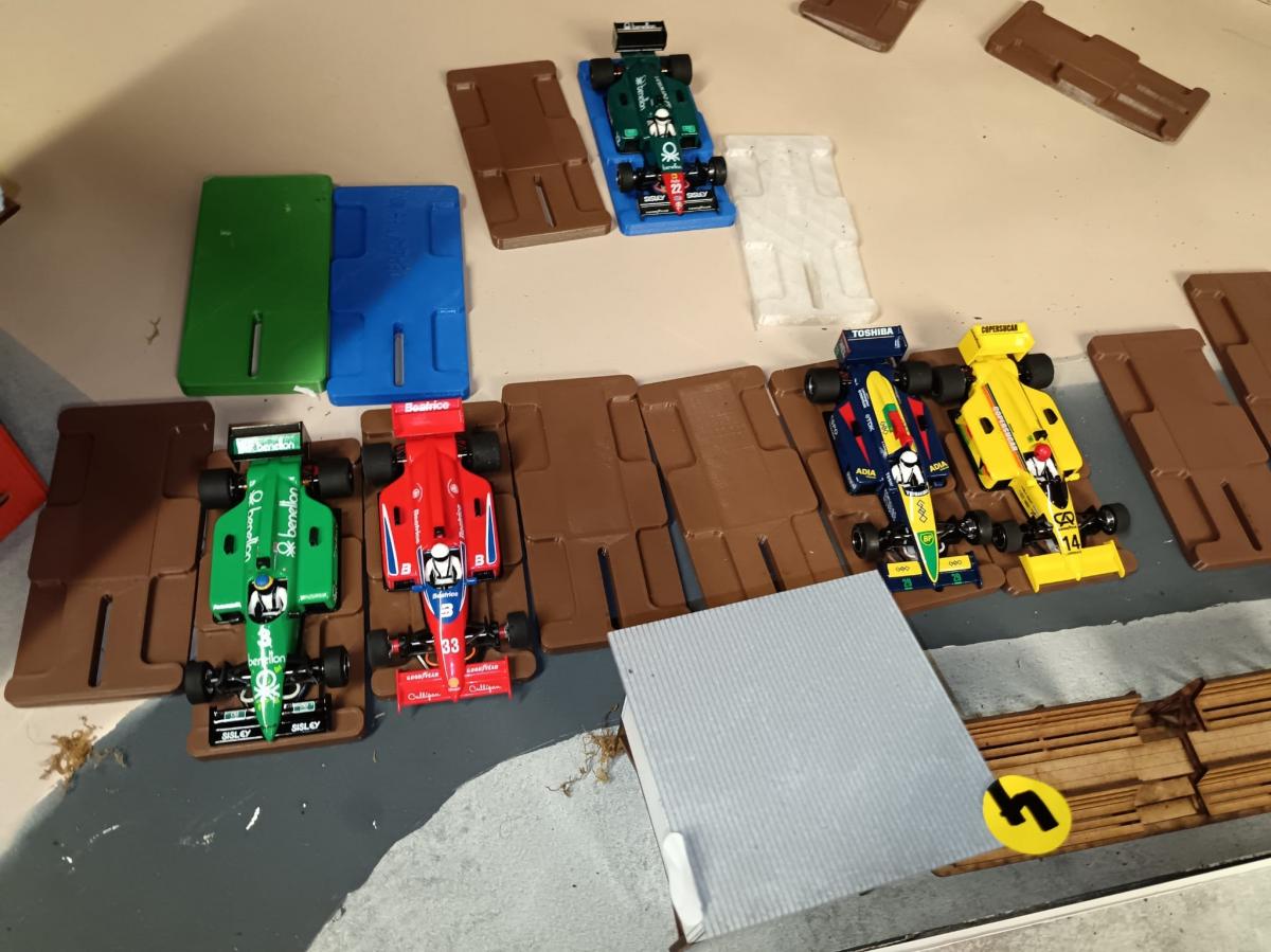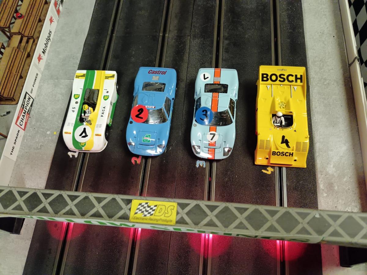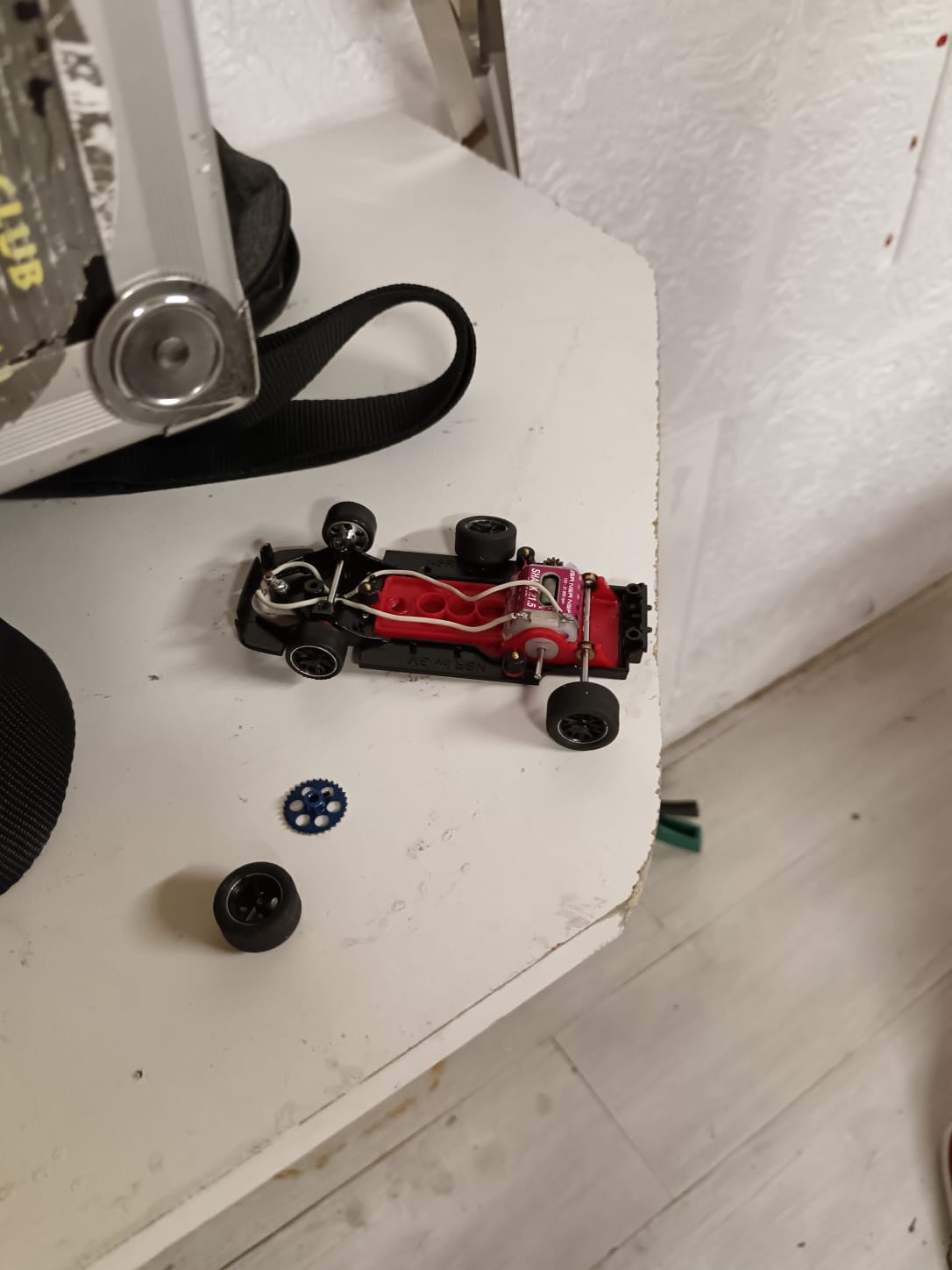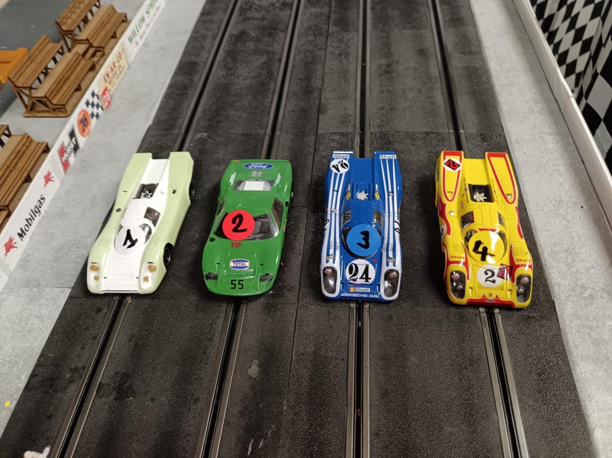 Petit rappel nous utilisons ces voitures avec quelques changement. Aurevoir le petit moteur d'origine remplacé par un Flat 6, offset 0.5, pignon de 9, couronne libre ( on est tous en 23), l'utilisation de suspensions autorisé, lexan autorisé, jantes av et arrière d'origine, pneus avant libre et arrière BRM 102s pour tous les pilotes !