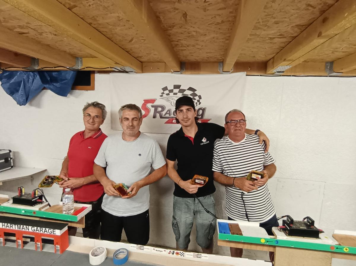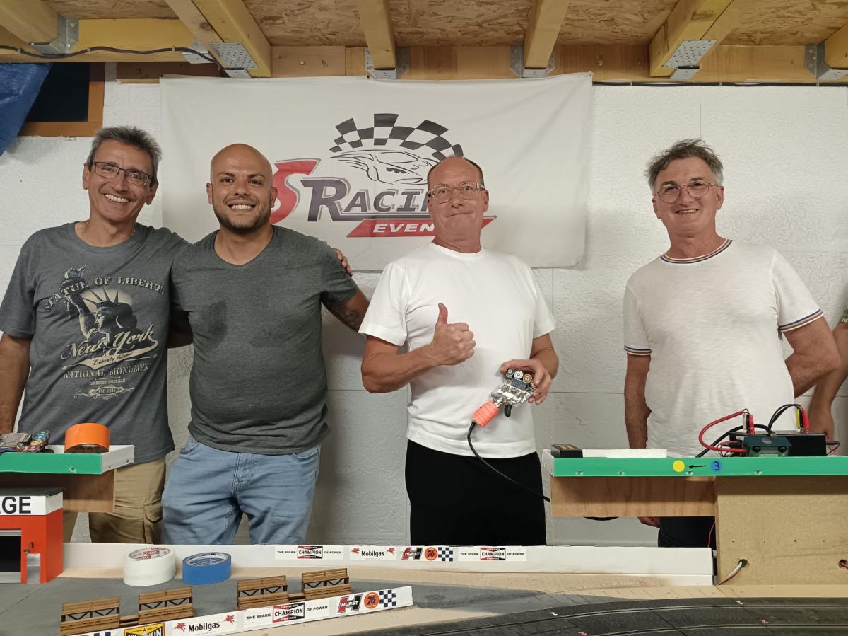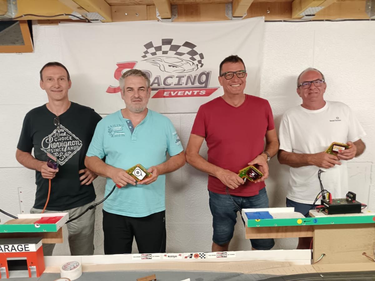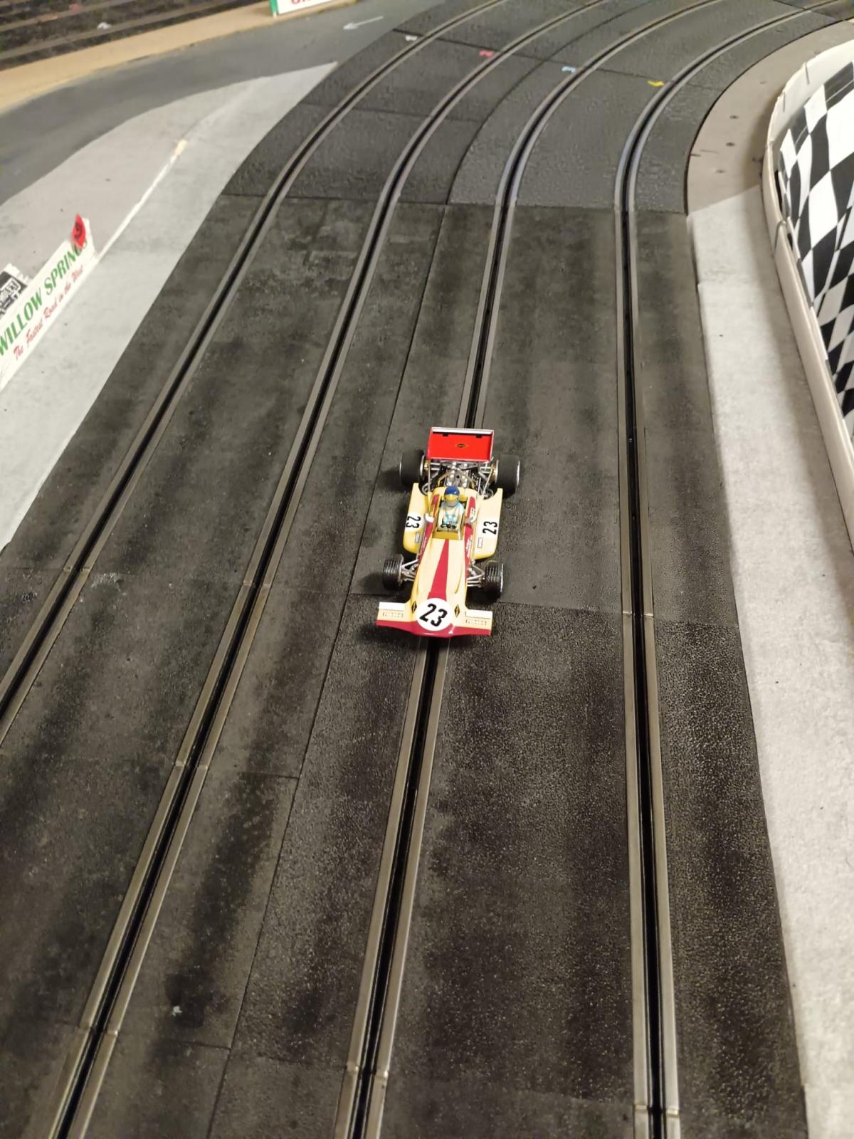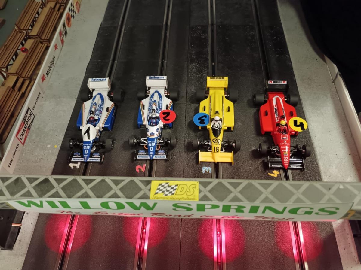 Petit rappel nous utilisons ces voitures avec quelques changement. Aurevoir le petit moteur d'origine remplacé par un Flat 6, offset 0.5, pignon de 9, couronne libre ( on est tous en 23), l'utilisation de suspensions autorisé, lexan autorisé, jantes av et arrière d'origine, pneus avant libre et arrière BRM 102s pour tous les pilotes !