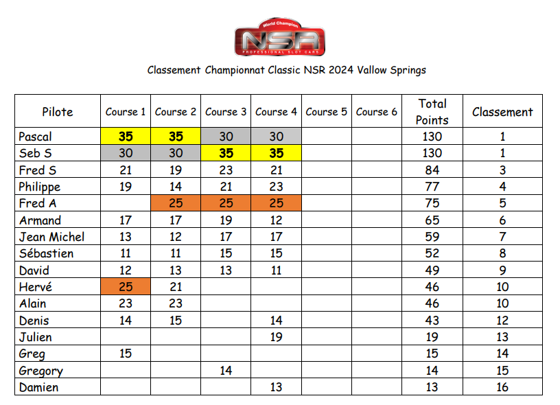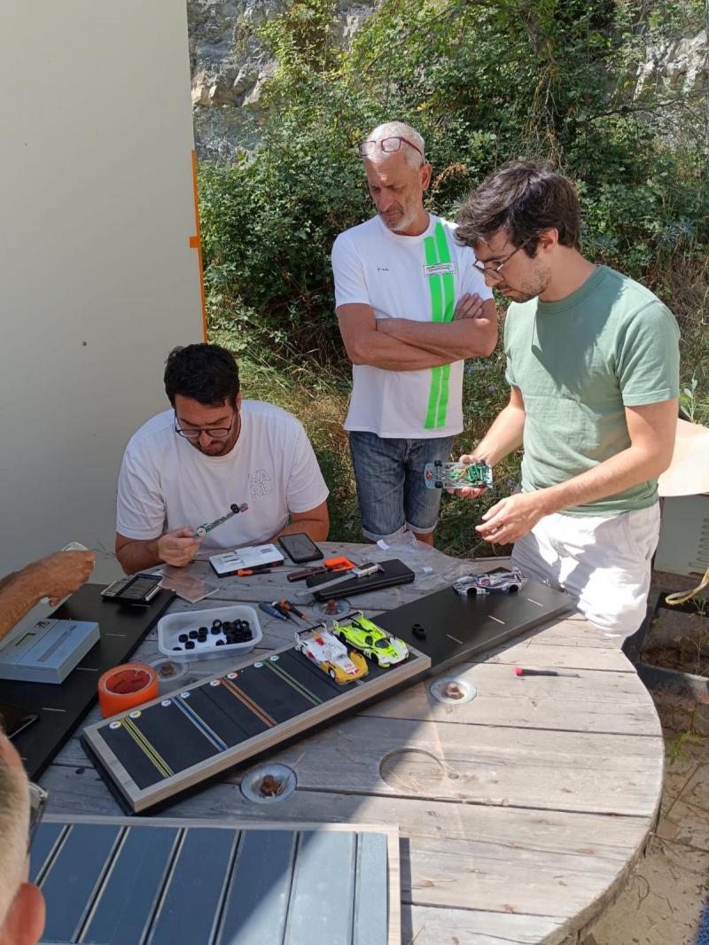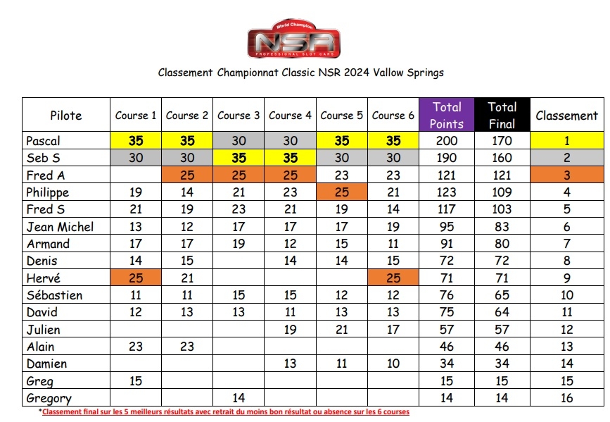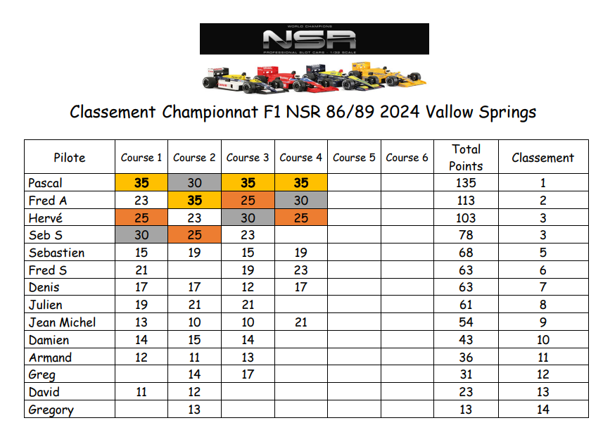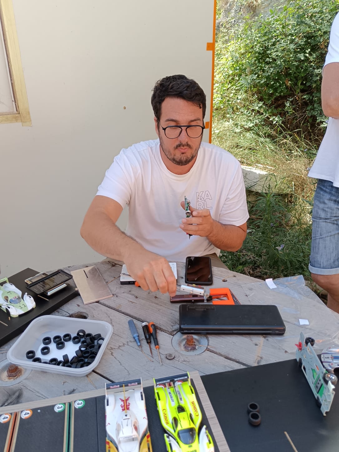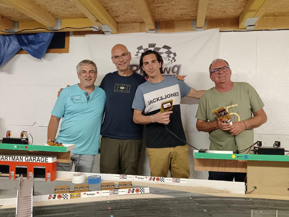 Petit rappel nous utilisons ces voitures avec quelques changement. Aurevoir le petit moteur d'origine remplacé par un Flat 6, offset 0.5, pignon de 9, couronne libre ( on est tous en 23), l'utilisation de suspensions autorisé, lexan autorisé, jantes av et arrière d'origine, pneus avant libre et arrière BRM 102s pour tous les pilotes !