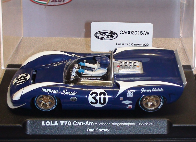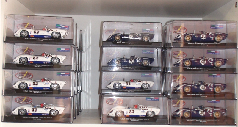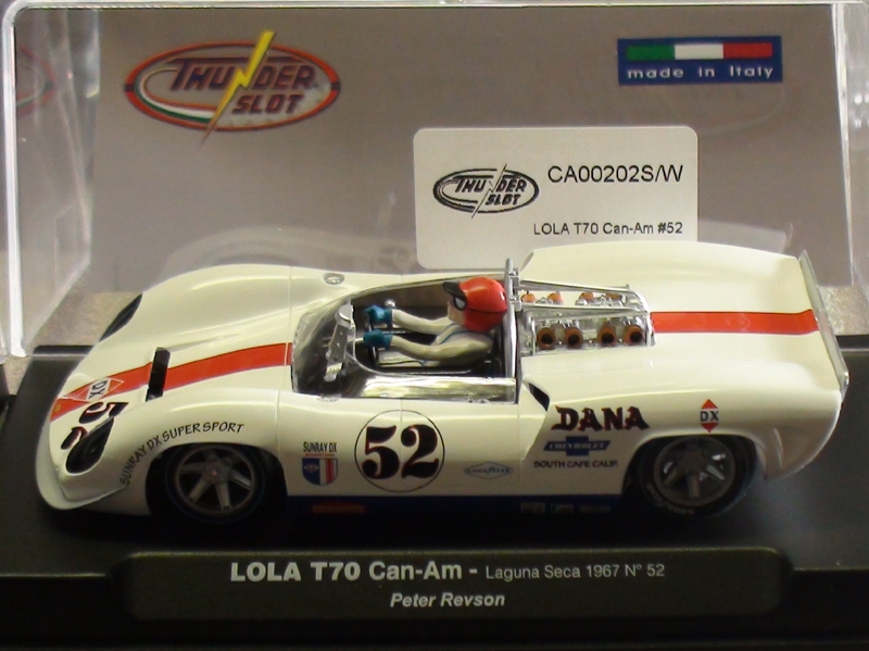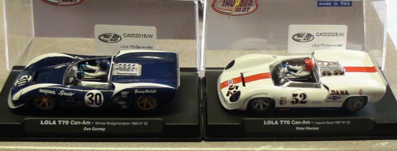 Perso, j'ai 5 Lola T70 Revell (en fait, 4 et demie, parce qu'un moteur a cramé...), achetées pour une bouchée de pain chez un revendeur montréalais (30$CAN chaque, soit en gros les 5 pour le prix d'une Thunderslot, ou presque). Eh bien, avec un peu de soin et de réglages (je n'ai rien changé dessus, à part les pneus, et le limage des puits de vis pour les rabaisser), ça roule décemment pour des soirées entre potes, histoire de s'échauffer un peu avant de sortir les missiles sol-sol hyper-pointus...