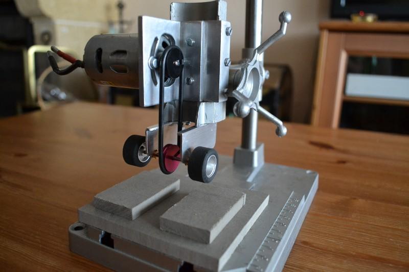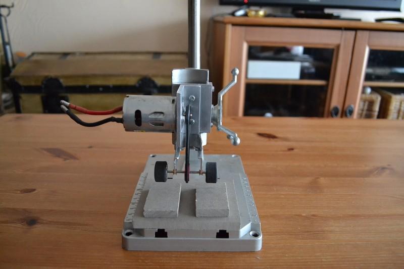 J’ai donc décidé de m’en fabriquer un. J’avais acheté d’occasion il y a pas mal d’année un support pour mini perceuse qui bien sur n’était pas compatible avec ma mini perceuse.