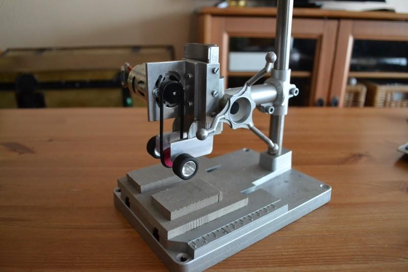J’ai eu donc l’idée de m’en servir pour faire mon Tire Truer. J’ai commandé les poulies et les courroies sur le net, et après quelques découpes, perçages, taraudages, voici le résultat.