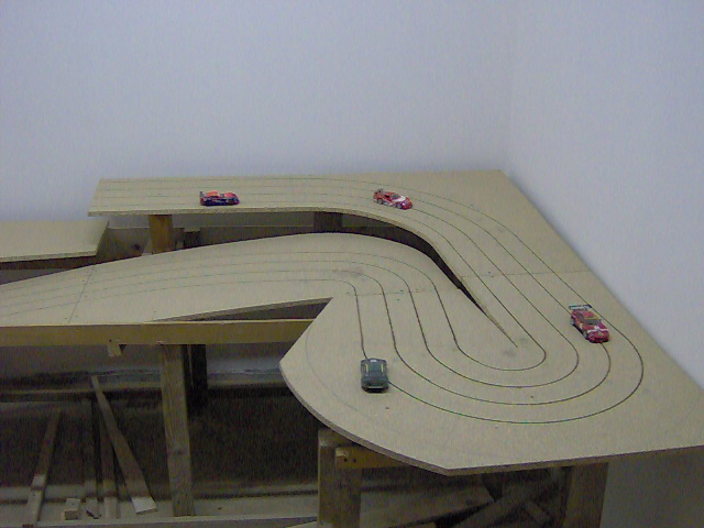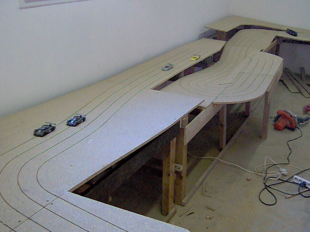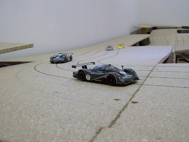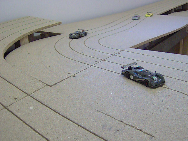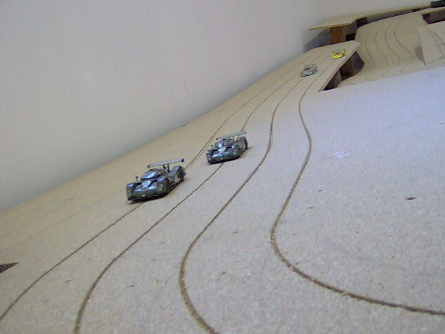 Coté boulette il n'y a pas que les enfants....sur mon ancien circuit pendant que je construisais ma déco, j'ai laissé trainé mon cendrier sur les voies, avant le repas, je decide de faire un tour de circuit bien mérité...et paf la bagnole contre le standar, plein fer...car mon cendrier n'est autre qu'un piston de camion Man !!!