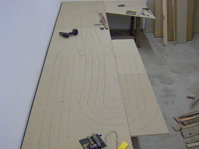 Il sera assez proche de mon ancien circuit plastique, enfin vous aurez la surprise au moins . Hi hi hi . Ma piece fait 6 m 60 de long , le circuit sera contre le mur . J'ai deja bati la carcasse avec le reste de bois de ma toiture ![]()