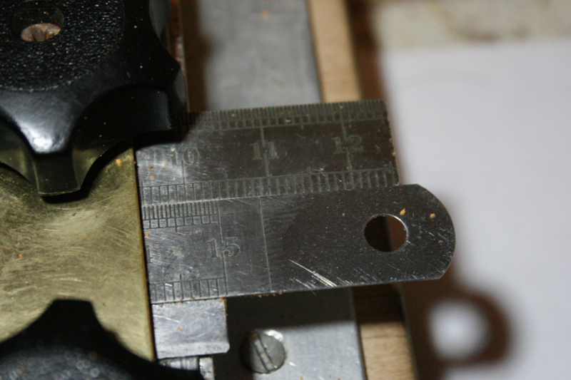 Les plus tatillons d'entres vous s'appercevrons que le réglage n'est pas bon actuellement car la pointe de la lame de cuter vient en contact de l'axe 3/32. Le point 0 devrait être décalé de la moitié du diamètre de l'axe.