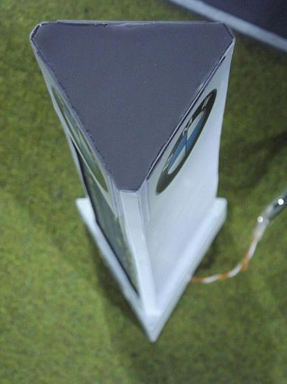 La tour à une base triangulaire de 70 mm de coté x et une hauteur de 220 mm. Elle dispose d'un total de quatorze leds réparties sur deux éclairages indépendant commandé par des interrupteurs.