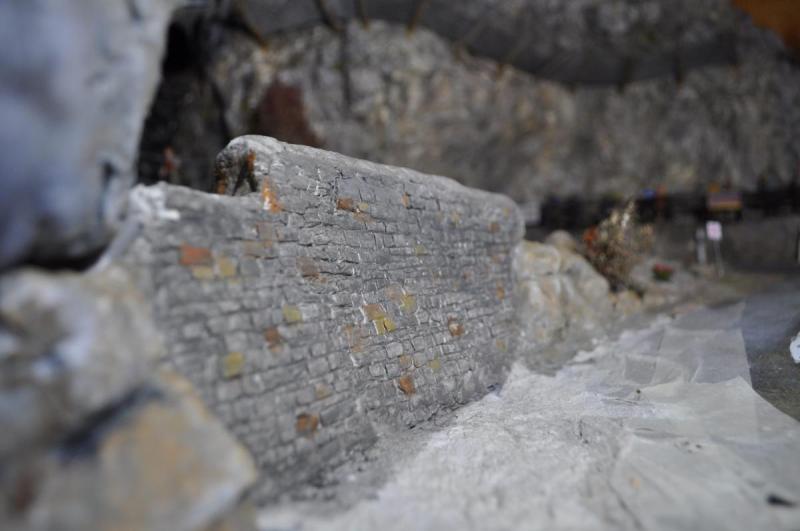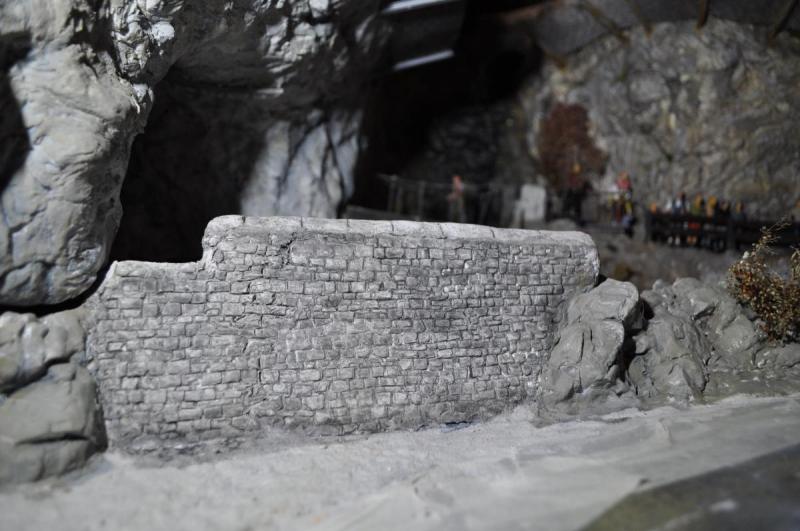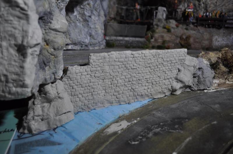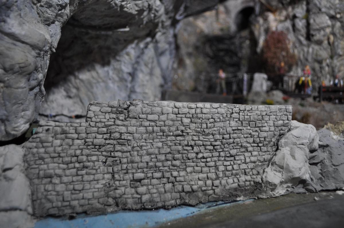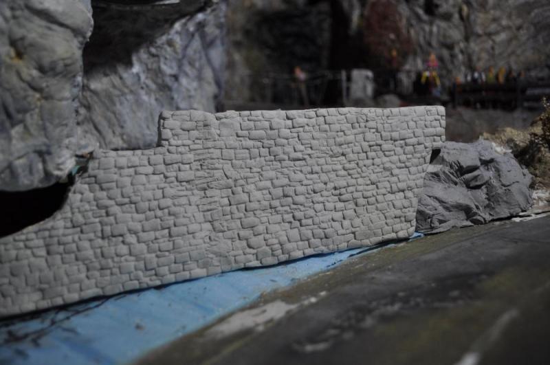 Il vient ensuite y coller le mur qu'il fait à l'aide d'un moule et de platre.
