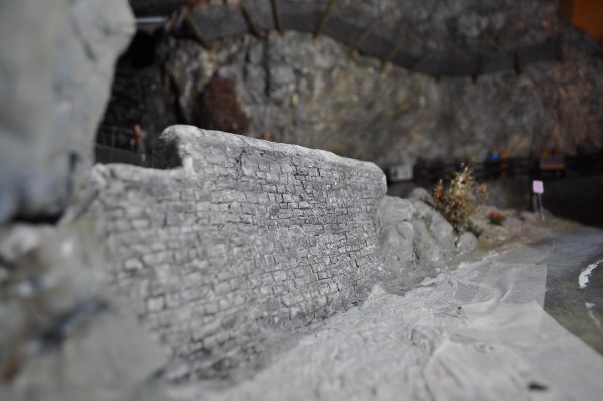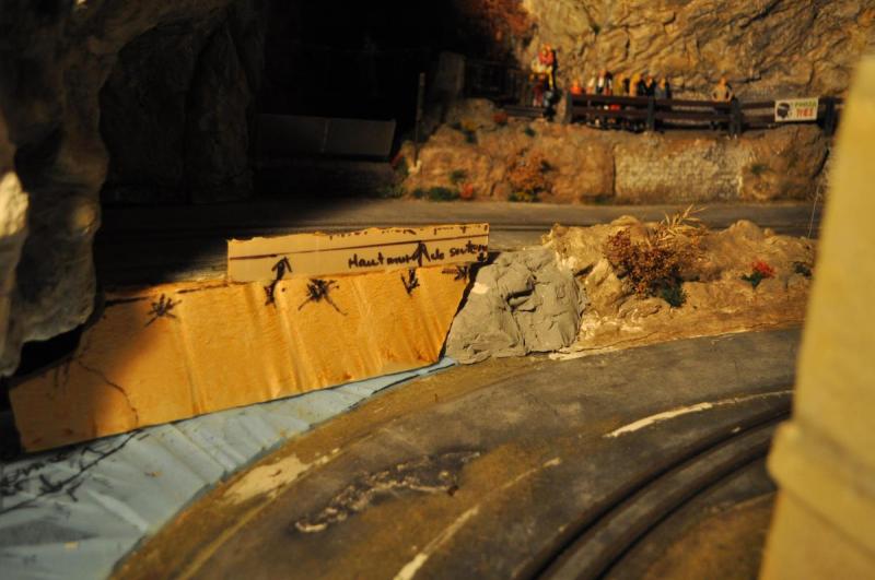 l'idée d'un graffiti géant sur la face pleine de rocher du tunnel (la ou il y a les boitiers de piles)