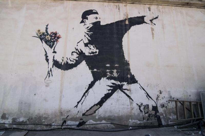 Banksy est un artiste de street art qui travaille sous pseudonyme. Son véritable nom et son identité exacte sont inconnus et font toujours l'objet de spéculations. Apparemment britannique et actif depuis les années 1990, il utilise la peinture au pochoir pour faire passer ses messages, qui mêlent souvent politique, humour et poésie. Ses œuvres sont des images humoristiques, parfois combinées à des slogans. Le message est généralement anarchiste1, antimilitariste, anticapitaliste ou antisystème et ses personnages sont souvent des rats, des singes, des policiers, des soldats, des enfants, des personnes célèbres ou des personnes âgées.