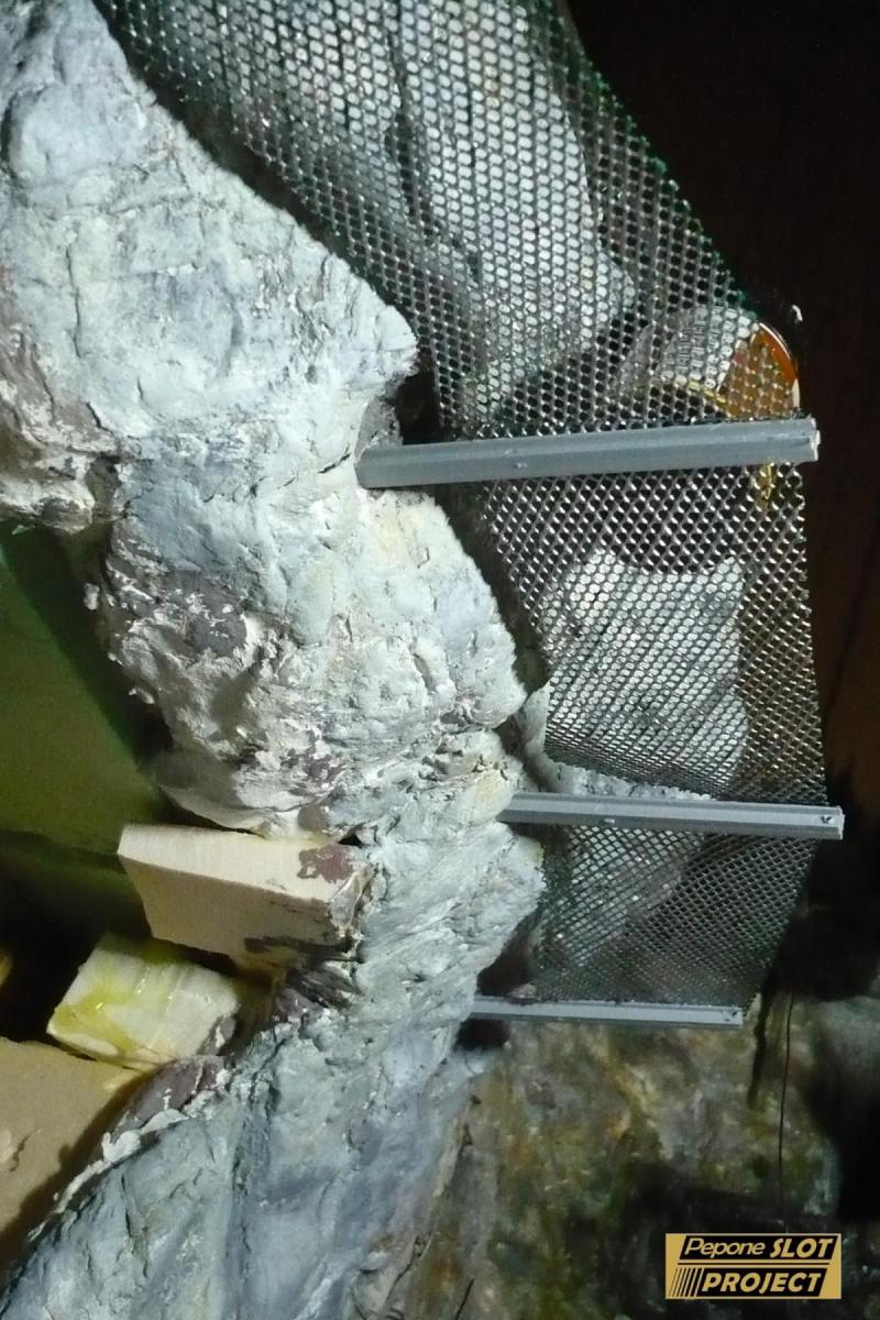 L'installation du filet anti-chutes de pierres au dessus de l'entrée sud du tunnel.