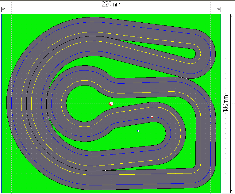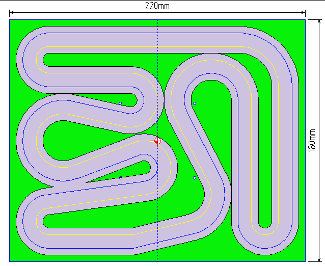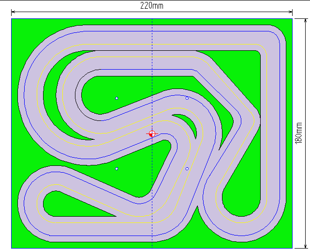 Bon j'me lance dans le choix du tracé pour un piste bois pliable de (220cm par 180cm)...