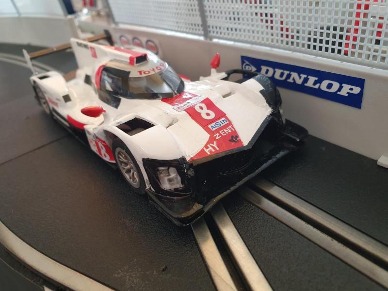 Bonjour Amis Sloteurs En attendant la TS 050 de SRC (c'est long...)Un essai de scratch pour la future Toyota (esprit LMP gardé,ça aide)Bon Slot à tousSlotpat