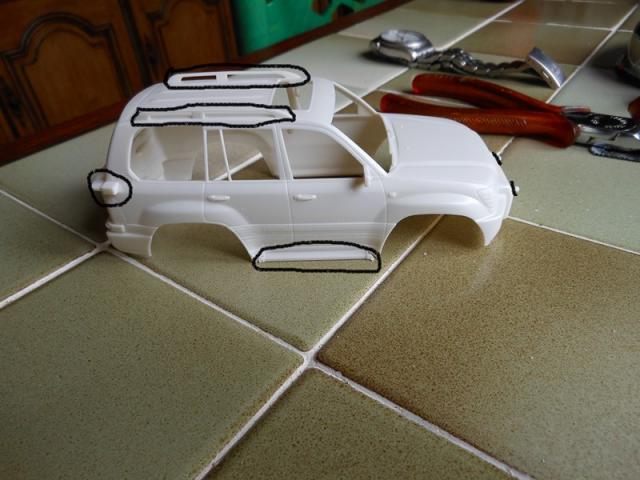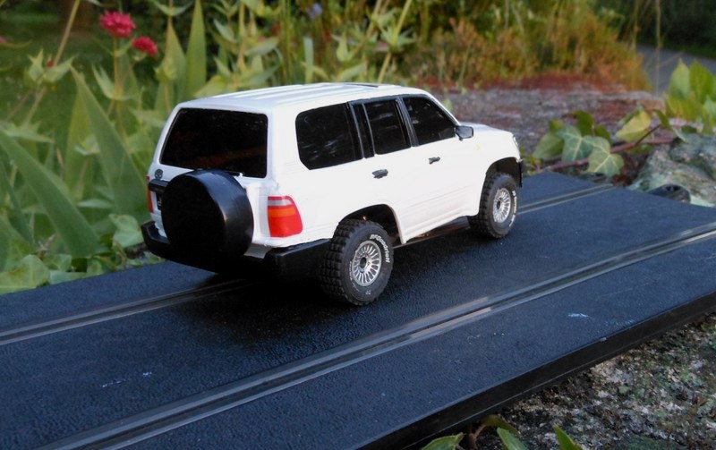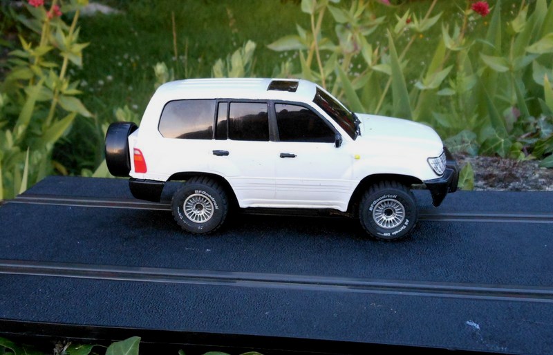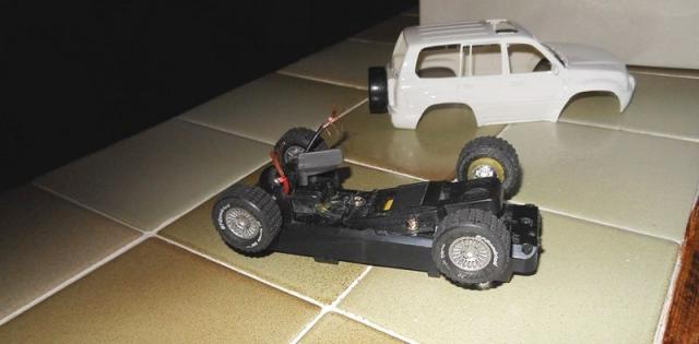 Transformation du châssis avec utilisation de roues plus en rapport avec le véhicule ( il me restait 4 roues SCX Off-Road non utilisées lorsque j' ai transformé un Range Rover Scalex en Off-Road sur un châssis SCX de VW Touareg)