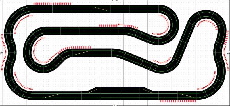J'aime bien le tracé, mais les bordures, c'est pas comme à l'échelle 1 : mets-en à l'extérieur des virages, c'est ici que c'est utile.