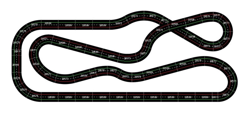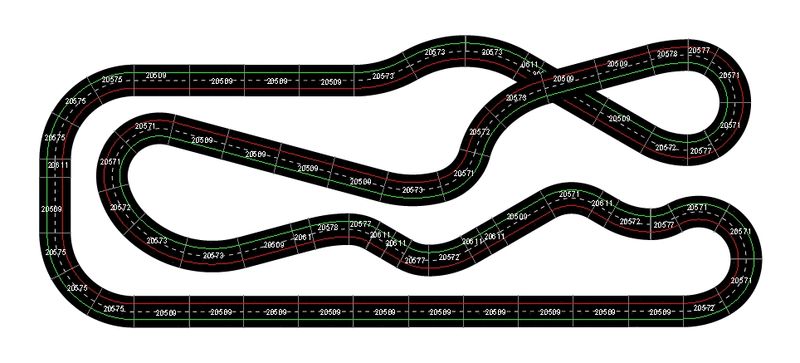 La 30347 est un aiguillage de croisement, libre au pilote de choisir ses options, ensuite j'ai un autre aiguillage qui améliore le virage (30363) et finalement, j'ai un aiguillage pour permettre de retourner à l'intérieure pour la grande ligne droite du bas. En fait je cherchais a avoir une bonne droite pour la vitesse et du technique au centre avec plusieurs options pour les dépassements.