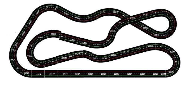 Franchement, le tracé me plait beaucoup. Il manque juste une pit lane que tu pourrais ajouter et peut être que l'aiguillage 30347 que j'aurai mis dans l'autre sens (30345). Mais du coup ça te ferait 2 aiguillages identiques...