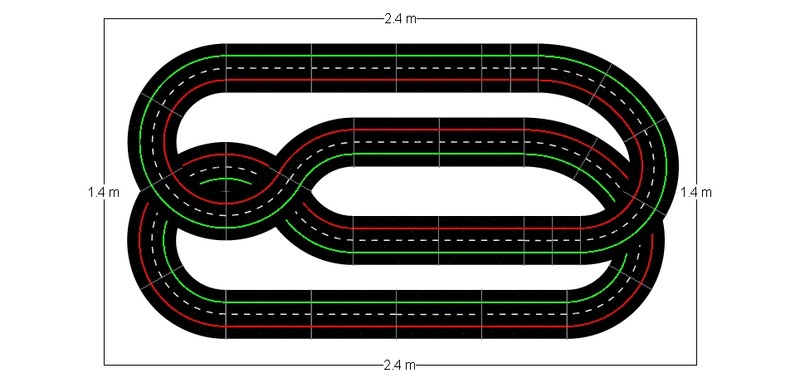Le circuit fait environ 2.17m x 1.39m pour 5.30m de développé. Je veux garder ces dimensions à peu près pour pouvoir mettre des bordures plus tard.