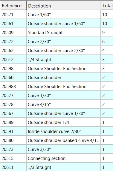 Je dispose de 7 droites et 8 virages 1/60 mais je peux acheter tout ce qui manque, pas un souci.
