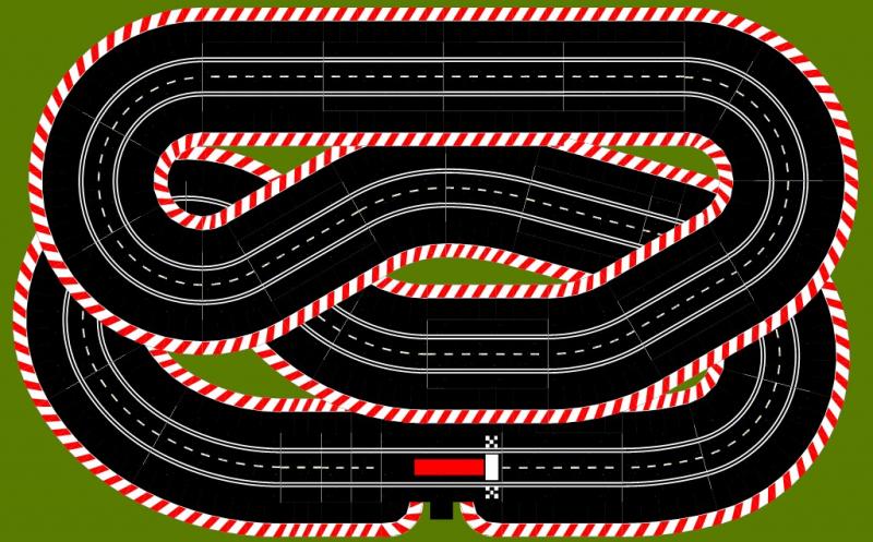 Je vais faire un plateau de 240 x 150 voir un peu plus si j'ai besoin. Je ne mettrais que la place nécessaire aux bordures, rien d'autre. Je choperais certainement des bordures Carrera, mais je vais quand même tester dans des tapis de sol decathlon gris/noir que j'ai déjà en stock avant.
