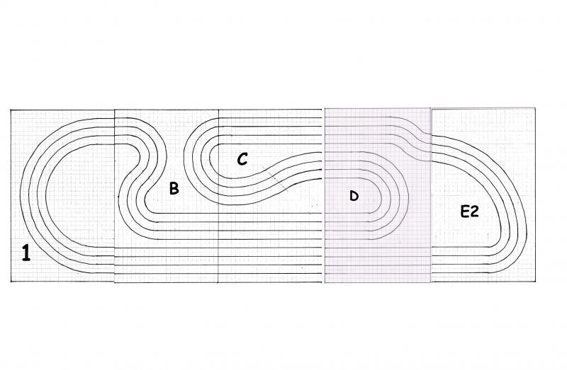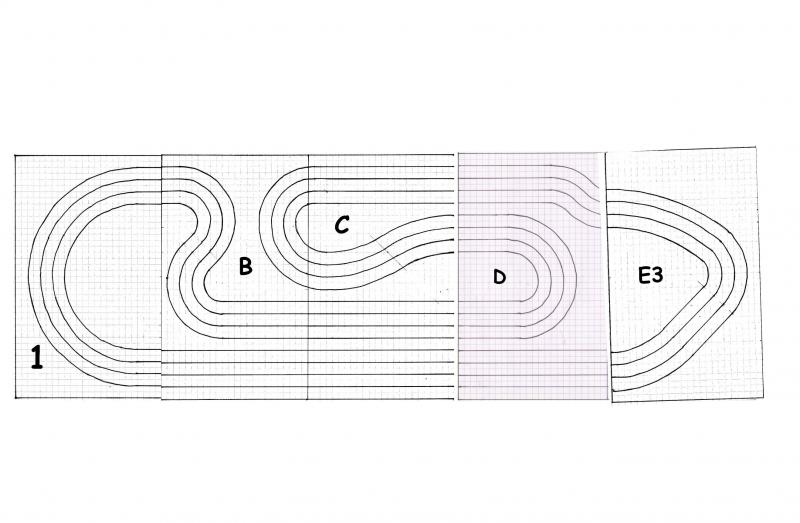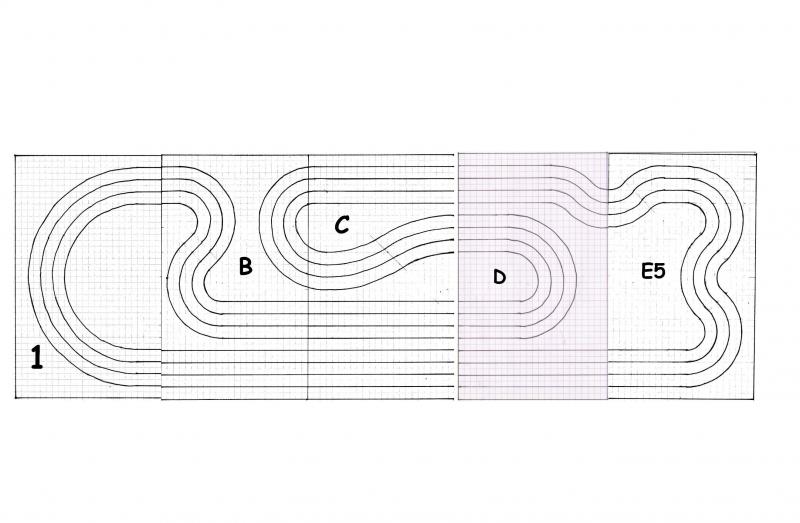 L'avantage des modules c'est que l'on peut reflechir a une evolution de la piste en fontion de la place disponible( et de l'argent) , ainsi entre les modules on peut ajouter des portions de ligne droite ou encore a la place du module 1 faire un banking ( dans ce cas là non transportable) ou bien fabriquer un module avec des virages a 90° pour avoir une piste en L