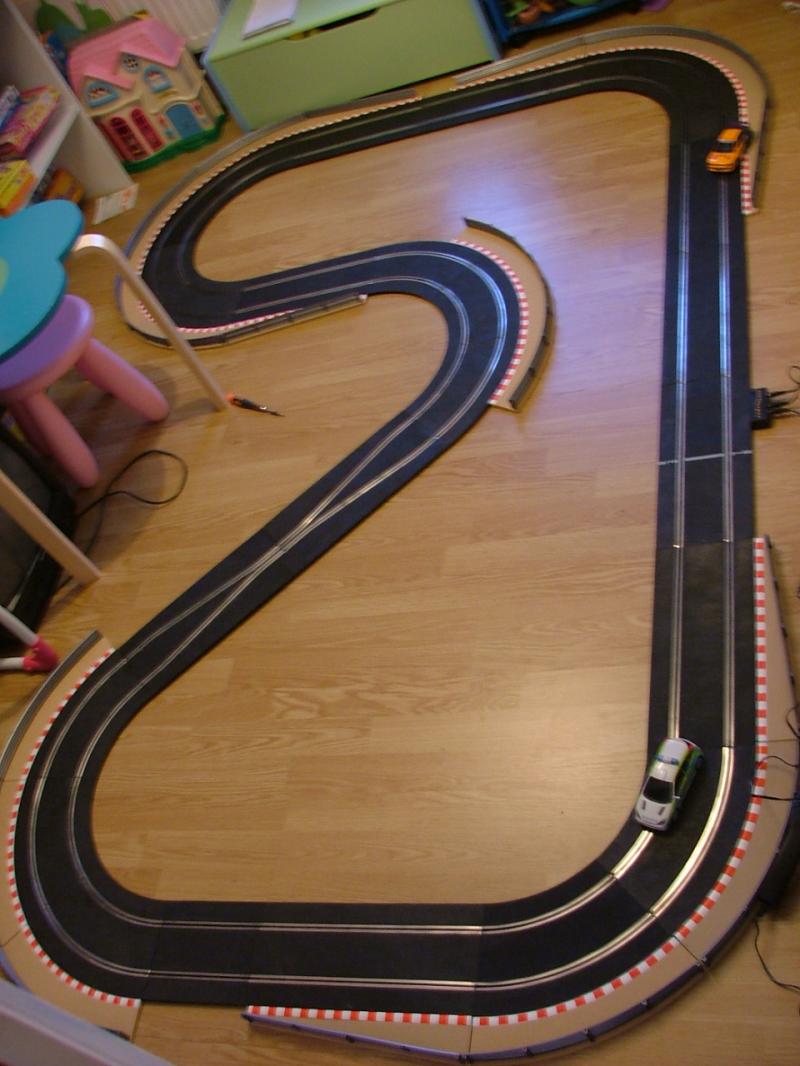 Bon voilà ce que ça donne ; après quelques essais, c'est assez fluide et assez simple. Je vais mettre les voitures que l'on voit sur la photo (une Subaru et une Focus police scalex issues d'un coffret) car je ne me sens pas trop mettre les Slot-it
