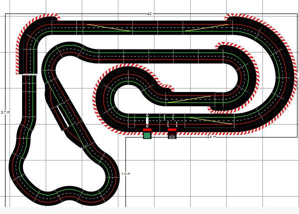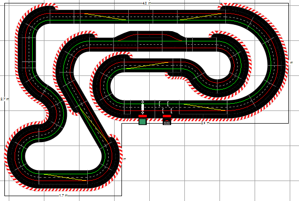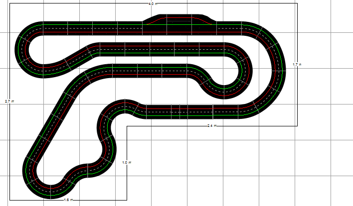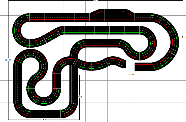 Ben sans vouloir te contredire, mon dernier tracé lui ressemble beaucoup, a autant de bordures et il a l'avantage de loger les stands en haut et n'implique pas une élévation. De plus les pistes font 17,92 m et 18,54 m, donc autant que le tien.