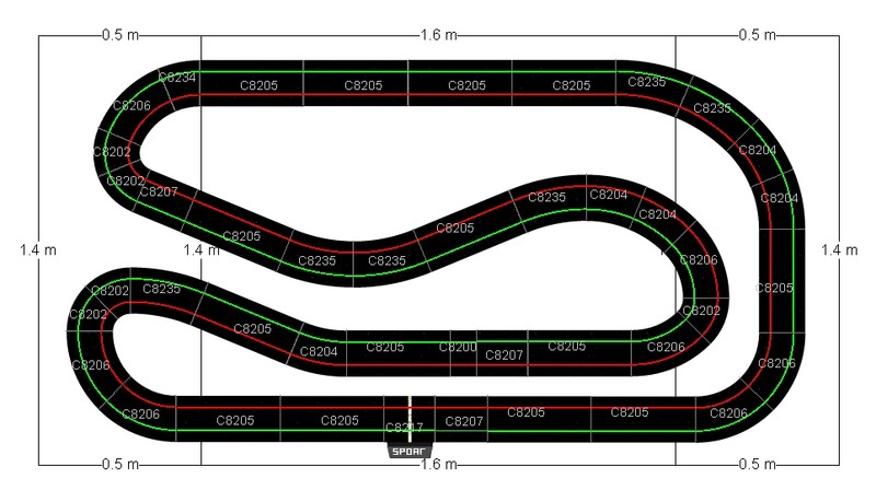 Les dimensions de la planche principale feraient 1M60 sur 1M45 environs Les deux planches secondaires mesureraient 1M45 sur 55 CM (l'idée serait d'y placer les deux virages principaux).