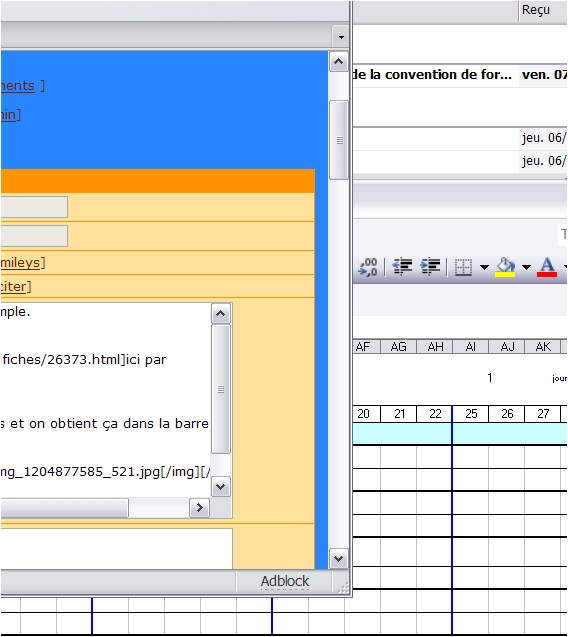 je l'imprime et ensuite je la scanne.ça te donne un fichier image que tu peux mettre sur le forum. Je crois que c'est la seule solution. J'ai cherché en vain. C'est dommage d'ailleurs. Auteur Message coyote33 Date du message : vendredi 7 mars 2008 à 08h54 essaye ca : tu appuis sur "imprim ecran" tu ouvre un log type "word" tu clique droit "copier", et tu recommence, cliqque droit copier, puis dans un logiciel d'image ( photoshop par ex ) tu re clique droit "coller". et là tu peux enregistrer ton image. c'est comme ca que je procede, c'est un peu fastidieux mais ca fonctionne