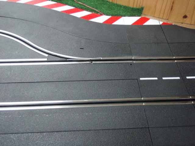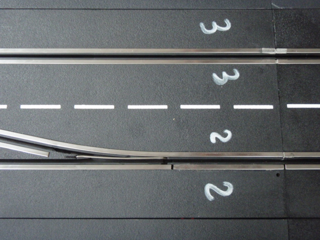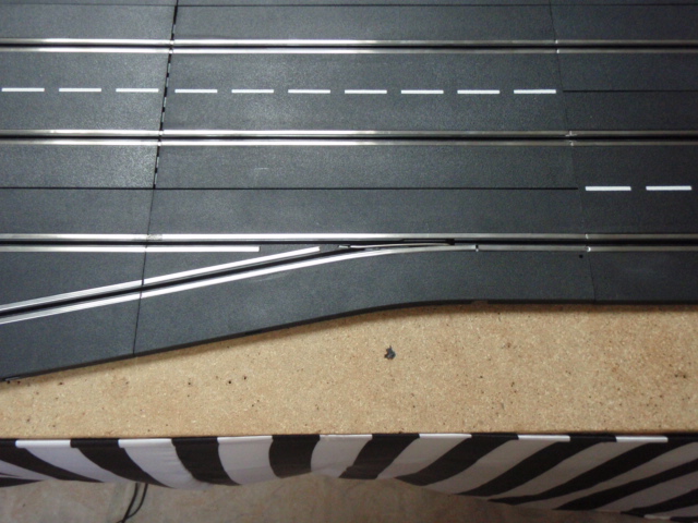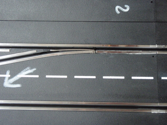 Modification des 4 premiers aiguillages. Les 2 aiguillages des stands et les 2 aiguillages permettant de passer de la 2 à 1 et de la 3 à 4.