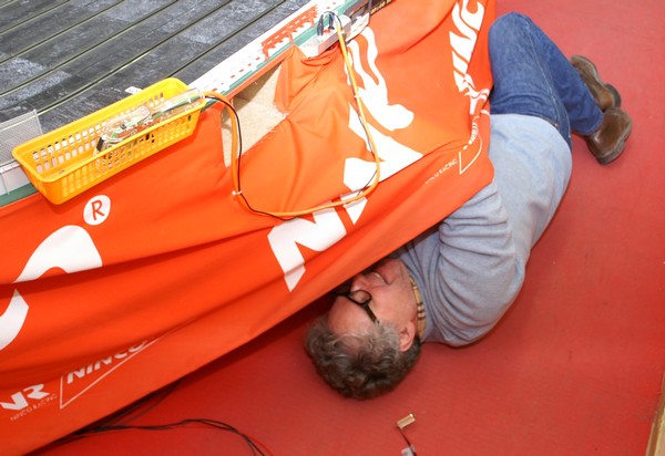 Démontage de tous les éléments de décoration de la piste pour avoir de la place pour travailler.
