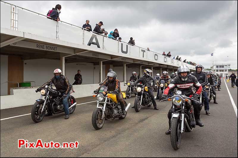 L'année suivante, au Mans du moins, sera mise en place une zone de décélération avant les stands pour pouvoir y entrer donc interdiction de couper la ligne blanche de séparation.