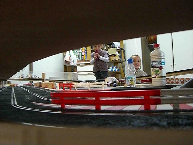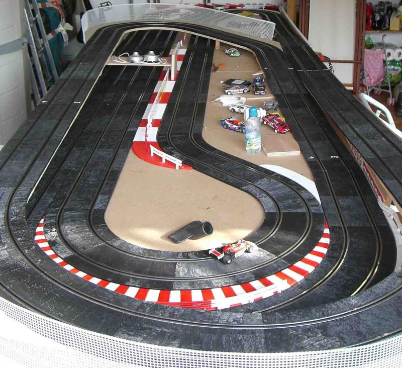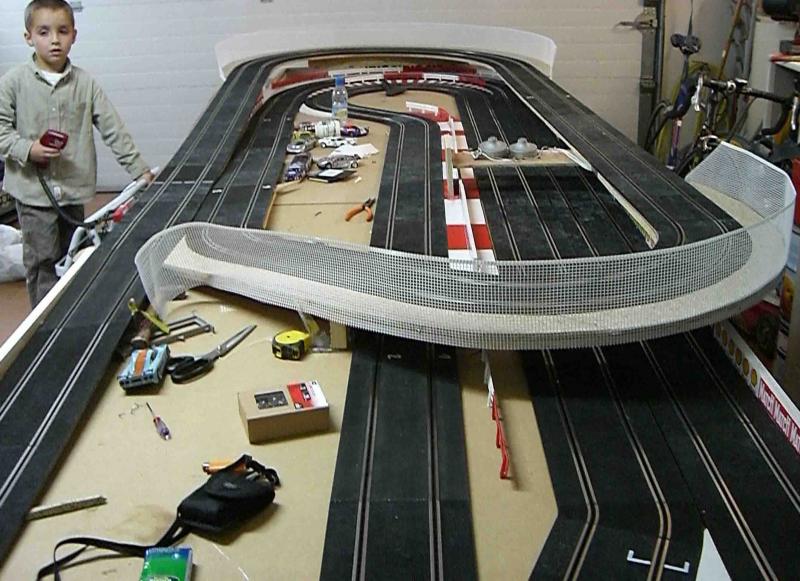 Bon le week-end a été productif, decoupages et mise en place des ponts, remontahe du circuit et tout marche! bon c'est pas du grand art comme defray mais bon ca roule et plutot bien! la psite et tres rapide et tres technique, plus beaucoup de repis si on veut peter les chronos! le wipe out arrive tres vite (5 lignes droites quand même!)bref ca me plait bien, va falloir bosser les finitions maintenant!