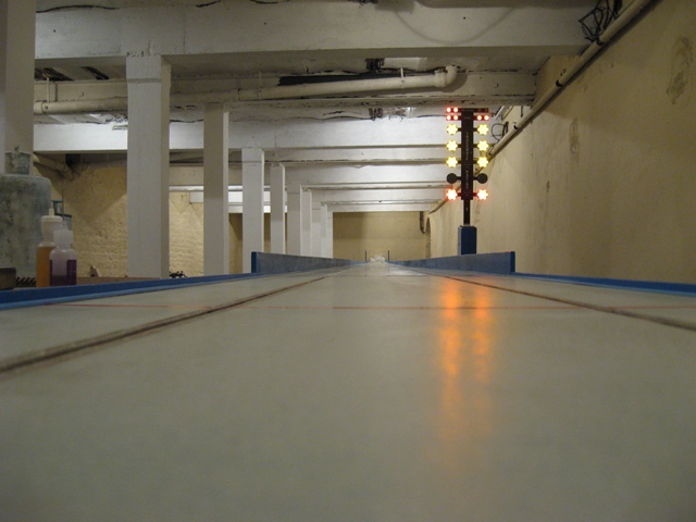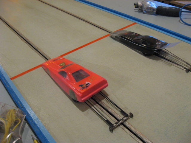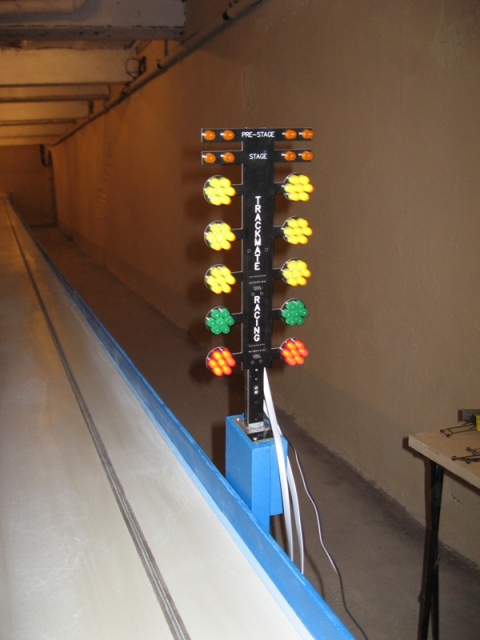 La ligne d'arrivée avec un jeu de leds de chaque côté qui indique le vainqueur, il y a une cellule sur la ligne et une 76cm avant pour la vitesse terminale. Selon les catégories ces vitesses réelles vont de 70km/hpour les plus lentes a plus de 200km/h pour un run parfait d'un AA/FC :