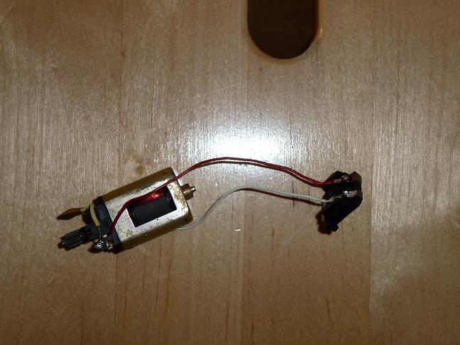 Souder le fil rouge et le fil noir du microprocesseur sur le moteur (perso moi pour quelle avance dans le bon sens j’ai soudé le fil rouge a la place du fil blanc d’origine).
