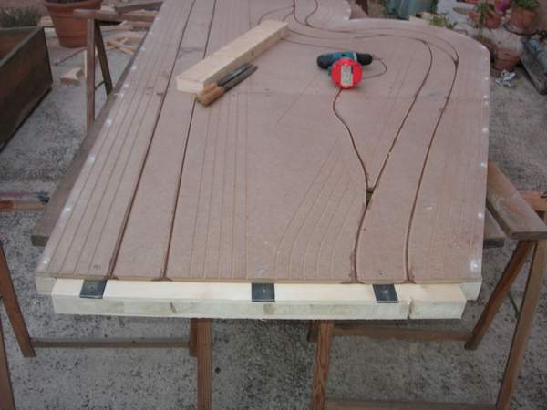 Après quelques coups de crayon, de défonceuse et de patience, voici la jonction mise en place. C'est l'ajustement des trous qui pose problème.