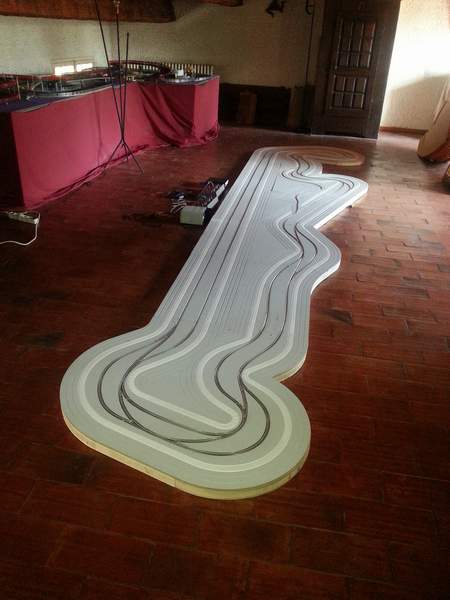 Et voilà la piste montée. Il faut vérifier le bon fonctionnement des aiguillages module par module ...