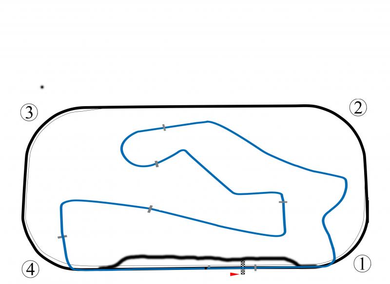 J'ai déjà un premier jet pour le tracé, il s'agira donc d'une réplique du "Indianapolis Speedway", un Quadri-oval avec banking. Je vais essayer d'ajouter à ce Quadri-oval, le tracé du circuit de "Road America" en infield. Et ceci en 2 voies (ou 3 si j'arrive à faire entrer 3 voies dans l'infield). Donc probablement, qu'il n'y aura pas un écartement constant entre les voies (contrairement au plastique), un peu dans le genre de ce que propose David.