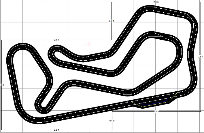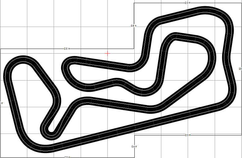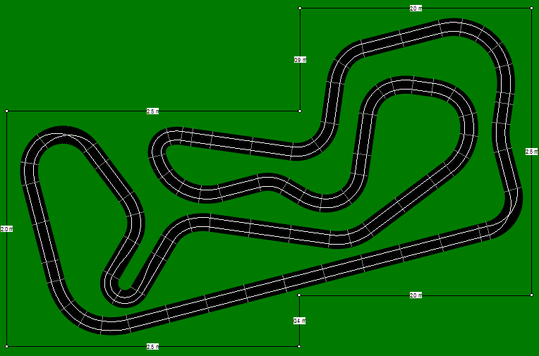 Modification minime du tracé avec suppression d'un R1, reprise de la grande courbe en haut à droite et mise en place de deux croisements en courbe pour équilibrer les lignes. Résultat 10cm d'écart entre les deux.