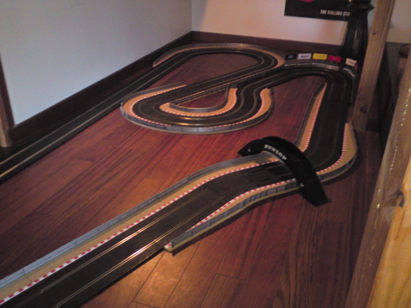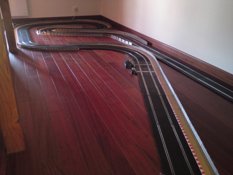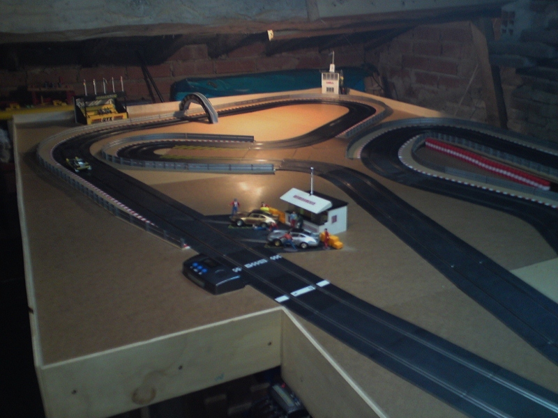 La pièce étant presque terminée nous avons essayé le tracé au sol et franchement il est mortel, le seul bémol c'est que la partie gauche se trouve dans un angle de la pièce et même si le plateau sera assez bas, le ramassage risque d'être difficile d'autant que la zone est accidentogène.
