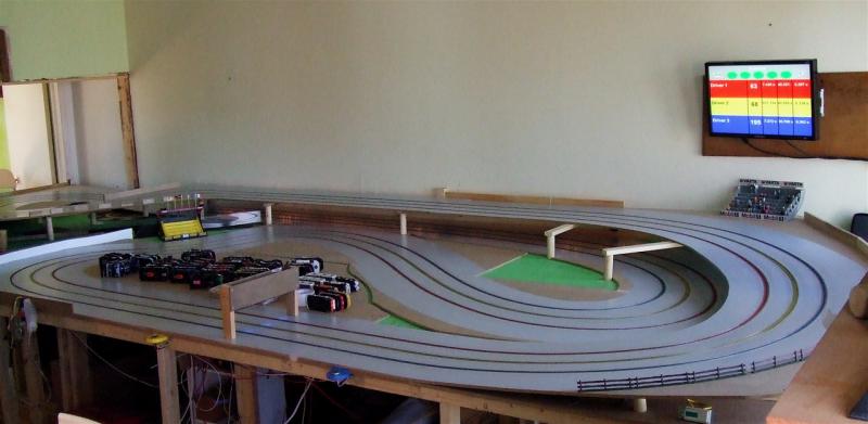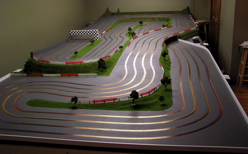 Voici deux photos de mon circuit . Je n'ai pas eu encore de temps pour faire de la décoration , j'aimerais faire style années 60' .