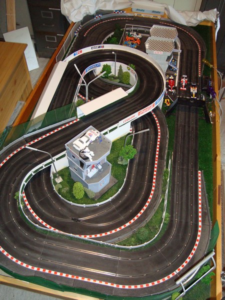 Et de fil en aiguille comme j'ai de la place dans le garage à l'etage il y a un projet de création d'une piece spéciale pour un autre circuit peut etre en 4 voies(j ai déja les rails avec une idée du circuit du nurburgring mais cela n'est pas encore vraiment fixé).