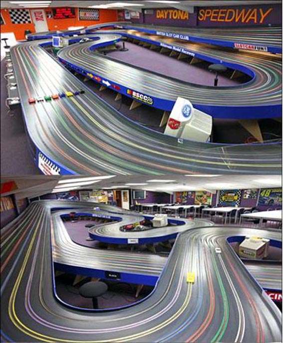 En voici une. C'est la piste du BSCC en GB. Je trouve qu'ils ont très bien réussi à concilier les deux, mais ceci reste un avis personnel. De plus je trouve que cette piste "a de la gueule" envers les slotteurs mais peut-être encore plus pour celui qui découvre l'activité. C'est très loin de toutes les idées qu'il a pu se faire du slot à travers un petit circuit contenu dans un coffret...