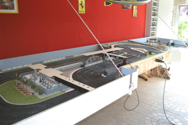 particularité: veux a tout prix l'eclairage sur ses voitures (meme les racer) pas un fou du chrono. mais tres bon bricoleur .je vous presente son circuit.