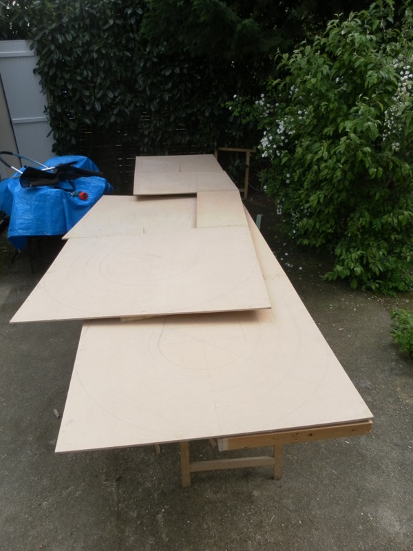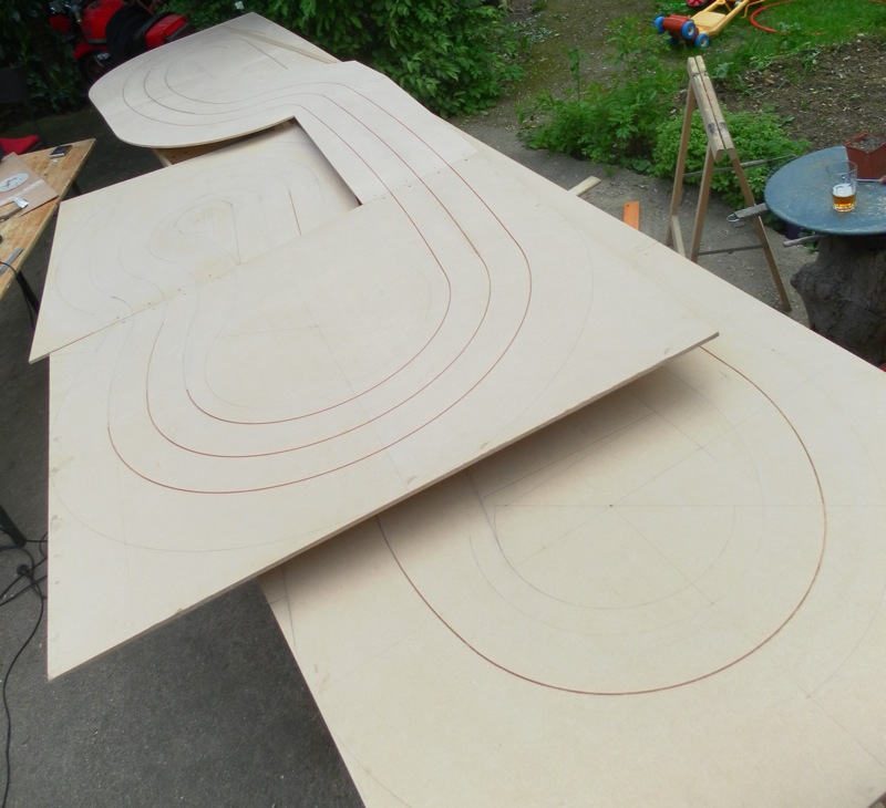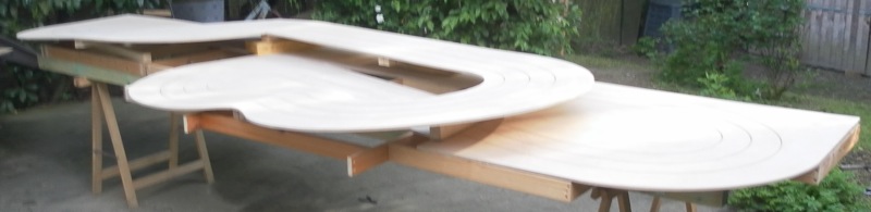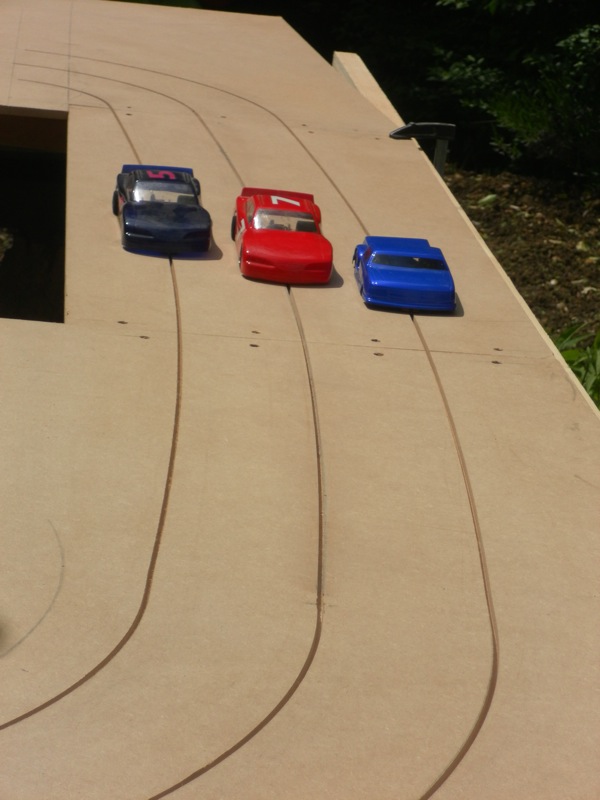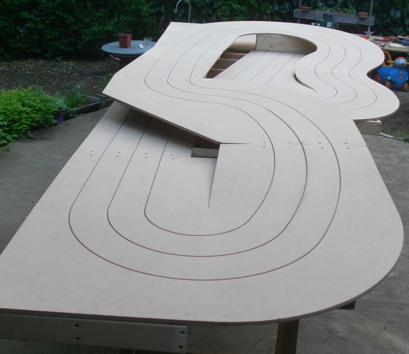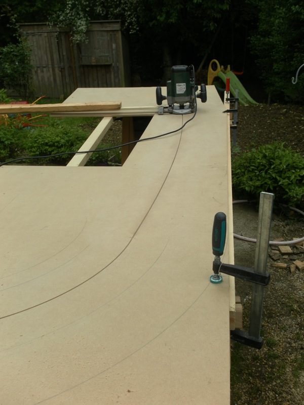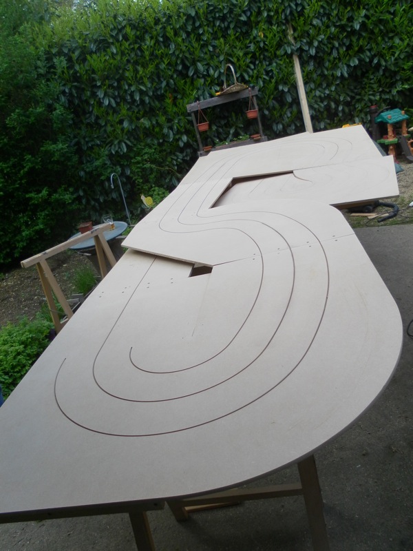 il y a pas mal de temps je m'étais fais une table pour transformer la défonceuse en mini toupie, je m'en suis servis pour faire un disque qui, placé sous la défonceuse, donne le bon écartement entre les voies