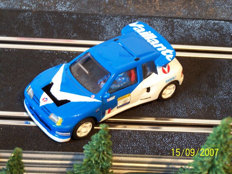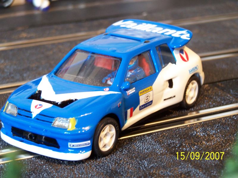 il s'agit donc d'une autos destiné a faire le fameux "tdf" , elle est montées sur un chassis de 306 ninco avec axes, jantes et pneus ninco, reste a voir le moteur, j'ai tester le NC-2, faut que je compare avec le boxer slot-it que j'ai en stock, vu la diversité des tracé et marque de rails, pas evidents de faire un choix judicieux......j'hesite meme a mettre un nc-1....