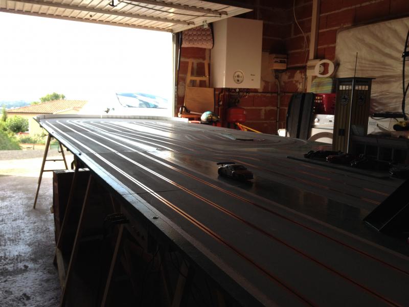 Désolé pour mon absence de réponse surtout au question de la jonction des plateaux. J'ai repris le système créé par david (blst) consistant à faire des sortes de jointure qui s'emboitent l'une dans l'autre. Après soit on pose le cuivre sur les deux panneaux soit on ponte pour être sur d’amener le courant :