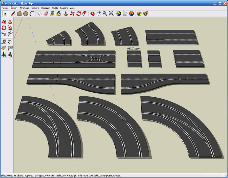 moi aussi j'ai essayé sketchup pour modéliser mon futur circuit mais n'étant vraiment pas doué j'ai du abandonner ce serais sympa de poster tes modeles de rails pour que nous puissions les utiliser