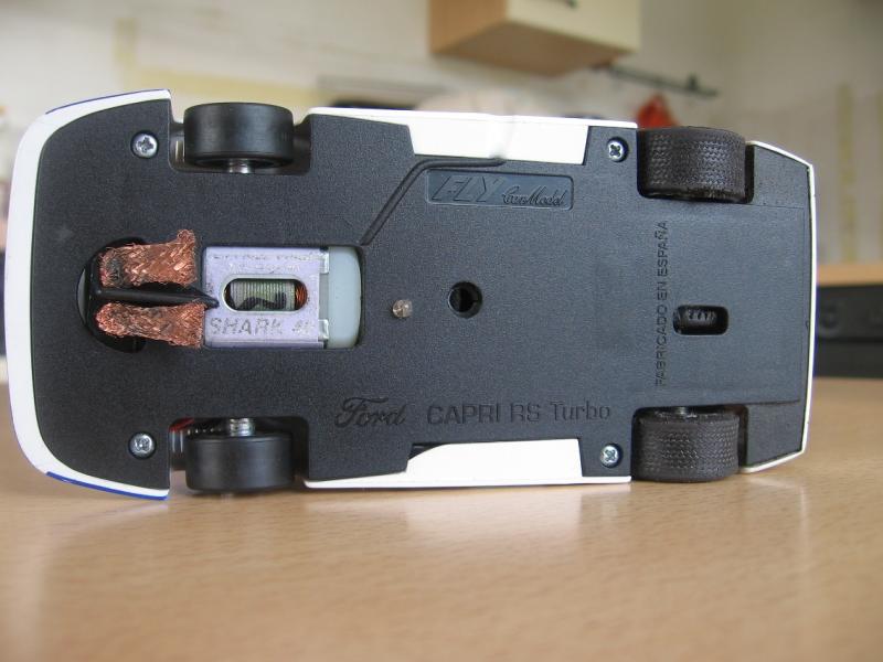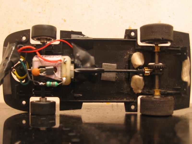 J'ai aussi par la suite mis hors service le moteur mabushi fly et remplacé par le très exceptionnelle moteur NSR shark 40000 trs/min sous 12V et 205g-cm ( oui ça envoie du très lourd). il m'a fallu renforcer le châssis car rupture du plastique qui maintient l'arbre de transmission réparé avec de la patte "pattex, changement du pignon plastique par un 10 dents mb slot en cuivre et remplacement et collage du ressort de l'arbre moteur.