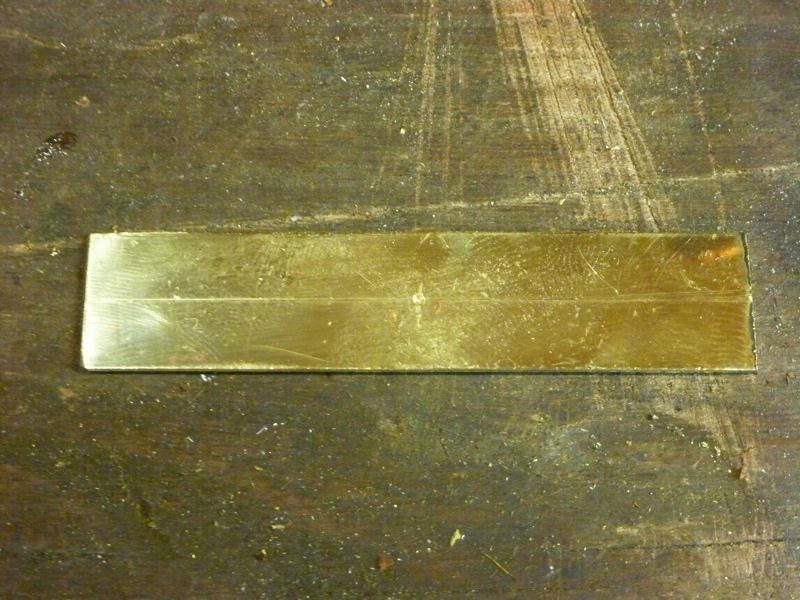 J'ai pris une chute de laiton de 1 mm d'épaisseur et tracé un trait parallèle au bort qui servira de référence pour que le trou de l'axe moteur soit bien aligné avec les trous des paliers