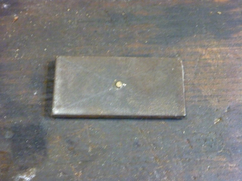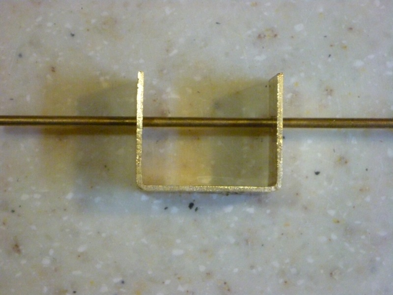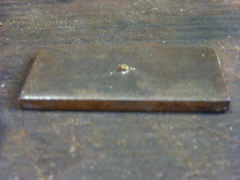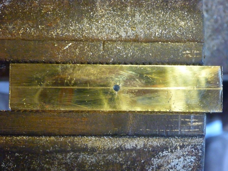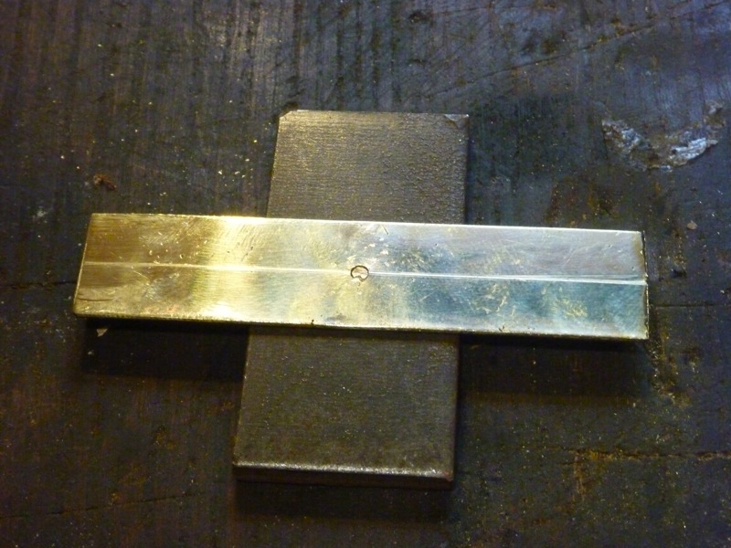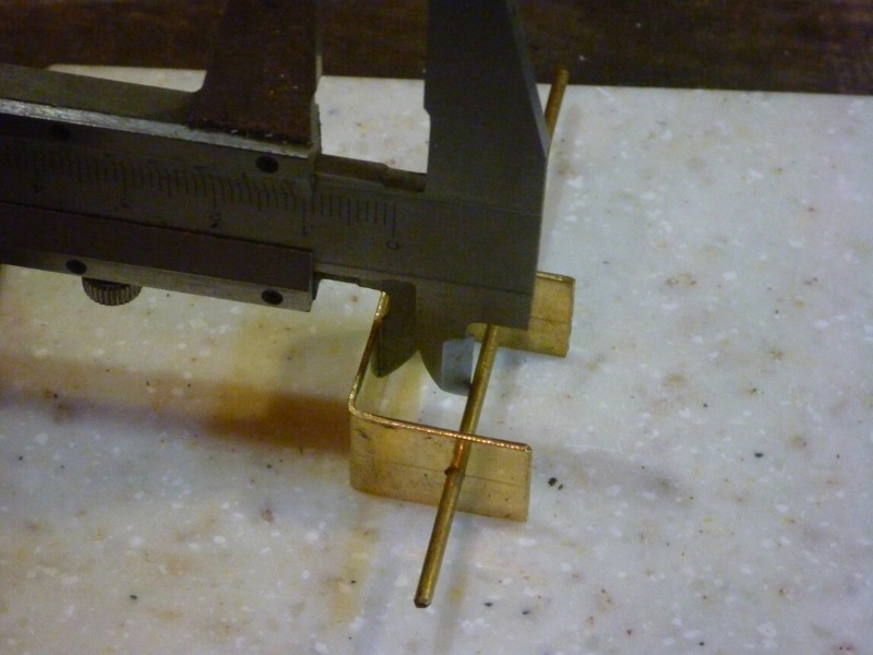 Une peite chute en fer, ici de 24 mm de large, un trou de 2 mm bien au centre, un petit bout de tige en laiton du même diamètre qui dépasse de 1 mm d'un coté et voilà un gabarit simple et bien pratique